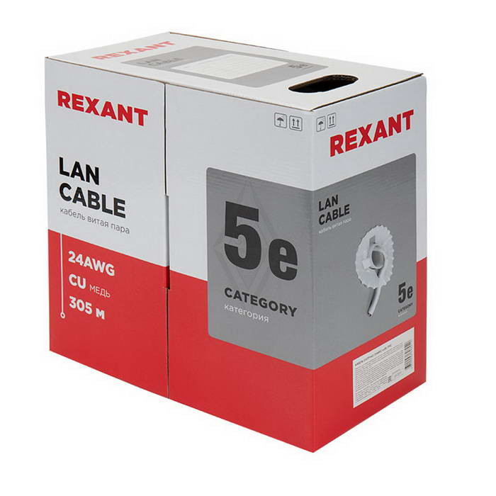 Витая пара 01-0043 U/UTP 5e PVC 4PR 24AWG 305м REXANT сетевой кабель для построения локальных вычислительных сетей с высокой скоростью передачи данных (до 1000 Мбит/с). Состоит из 4-х витых пар, диаметр каждой из которых составляет 24 AWG. Кабель имеет общую длину 305 метров и PVC (поливинилхлорид) оболочку, обеспечивающую высокую прочность и износостойкость. Идеально подходит для соединения компьютеров, коммутаторов, маршрутизаторов и другого сетевого оборудования.