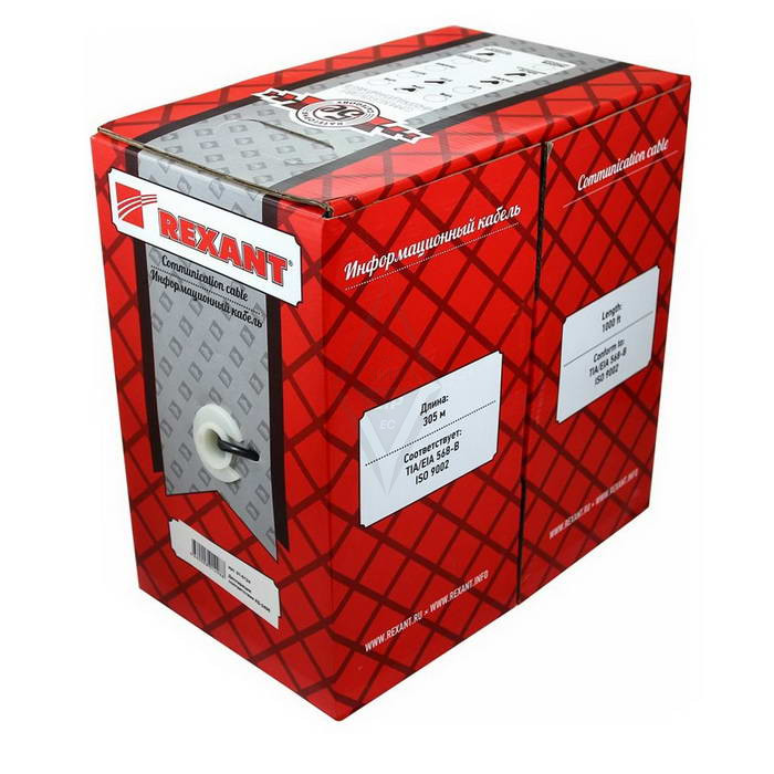 Витая пара 01-0122 F/UTP 5e PVC 2PR 24AWG 305м REXANT высококачественный двухпарный сетевой кабель для передачи данных в локальных сетях со скоростью до 1000 Мбит/с. Диаметр каждого проводника составляет 24 AWG, общая длина кабеля - 305 метров. Кабель имеет наружную изоляцию из поливинилхлорида (PVC), которая обеспечивает устойчивость к механическим повреждениям и длительный срок службы. Этот кабель подходит для подключения таких сетевых устройств, как компьютеры, маршрутизаторы, модемы и принтеры.