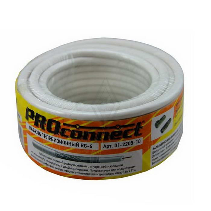 Коаксиальный кабель 01-2205-10 RG-6U 48% 10м(б) PROCONNECT арт.116143