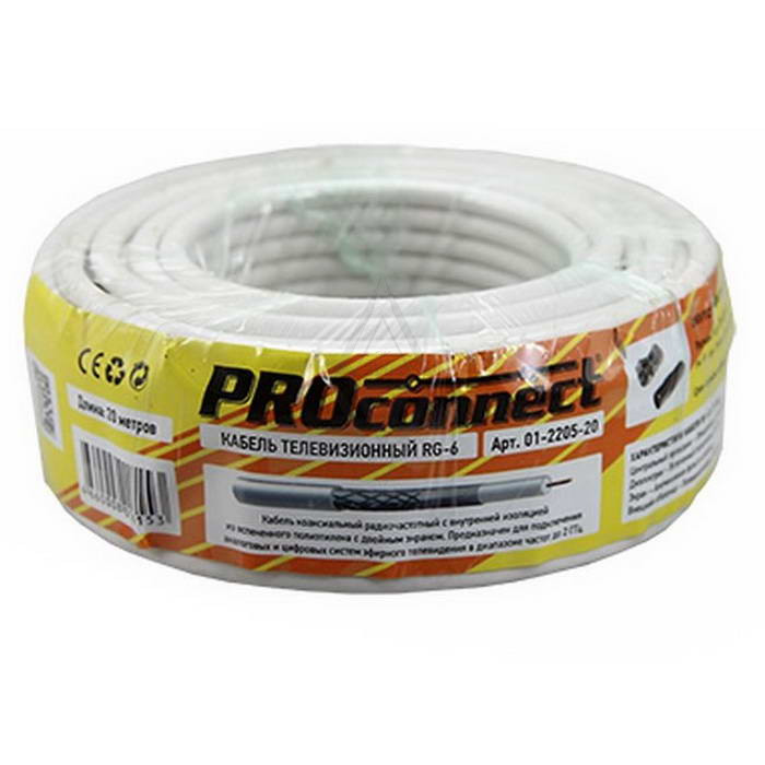 Коаксиальный кабель 01-2205-20 RG-6U 48% 20м(б) PROCONNECT арт.116144