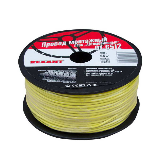Провод пгва 01-6542 ПГВА 1х2.50 желтый (100м) REXANT арт.116031