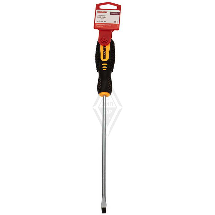 Отвертки 12-6432 Отвертка шлицевая SL6х200 REXANT длиной 200 мм и толщиной 6 мм. Используется для монтажа или демонтажа крепежных элементов в электронных приборах. Изготовлена из высококачественной стали с удобной ручкой для комфортного использования.