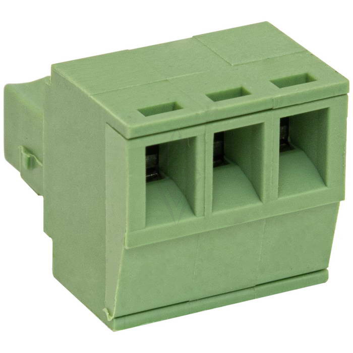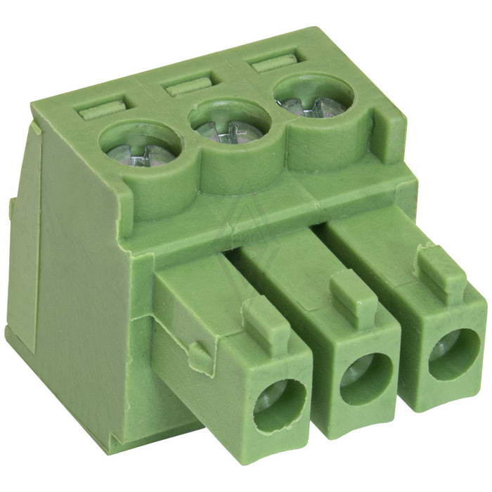 Разъемный клеммный блок на кабель RUICHI 15ERGK-3.81-02P, розетка (F), 3 контакта, шаг 3.81 мм – это конструкции, состоящие из 2-х, или более частей. В большинстве случаев, одна из которых крепится на плате, а вторая на кабеле. Для соединения подвижная часть клеммника вставляется в неподвижную и фиксируется зажимной пластиной.