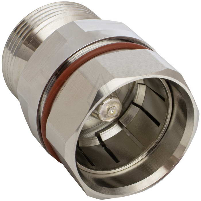 Высокочастотный разъем 7/16 DIN (розетка) RUICHI 25-J012W, 7.5 ГГц, 50 Ом, IP68, -40...+85 °C, монтаж на кабель, тип кабеля РК 50-22-37, корпус/контакт латунь – это коаксиальный коннектор большого размера с резьбовым соединением. Обозначение 7/16 происходит от метрических размеров рабочей поверхности контактов соединителя: 7 мм наружного диаметра внутреннего контакта и 16 мм внутреннего диаметра внешнего контакта.