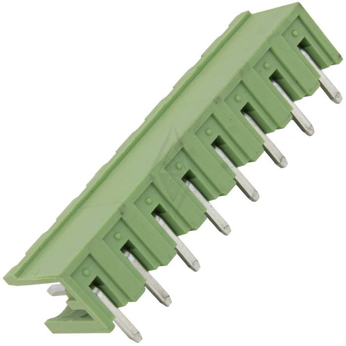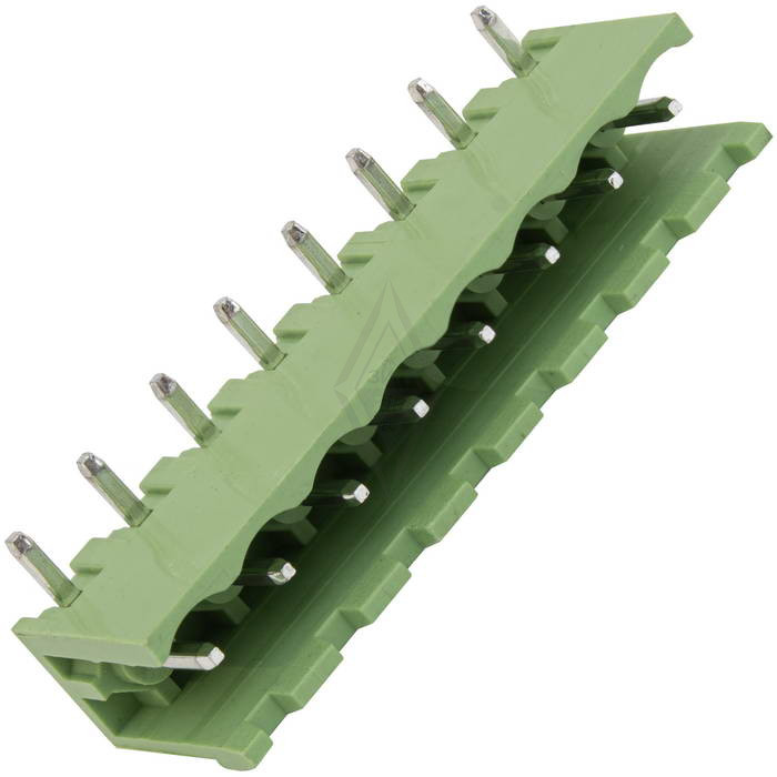 Разъемный клеммный блок на плату угловой (R) RUICHI 2ERGR-5.0-08P, вилка (M), 8 контактов, шаг 5.00 мм – это конструкции, состоящие из 2-х, или более частей. В большинстве случаев, одна из которых крепится на плате, а вторая на кабеле. Для соединения подвижная часть клеммника вставляется в неподвижную и фиксируется зажимной пластиной.