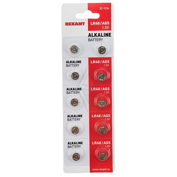 Батарейки 30-1036 Батарейка LR48 AG5 LR754 G5 REXANT арт.115258