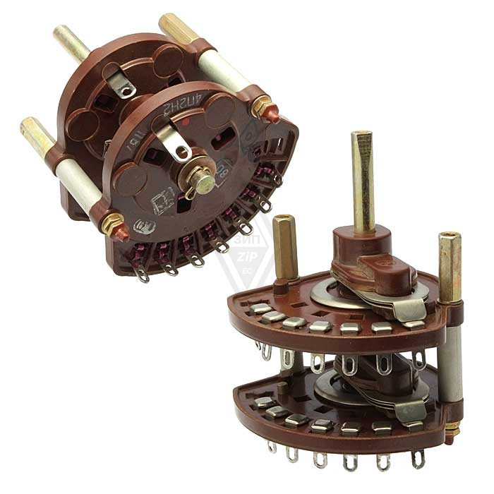 Галетные переключатели 4П2Н2 представляют собой поворотные щёточные переключатели для объёмного монтажа. Они предназначены для коммутации электрических цепей переменного и постоянного тока в узлах и блоках радиоэлектронной аппаратуры общего назначения. Эти переключатели имеют от 3 до 24 рабочих положений и от 1 до 4 направлений, изготавливаются для внутреннего монтажа и соответствуют климатическому исполнению УХЛ по ГОСТ 15150-69.