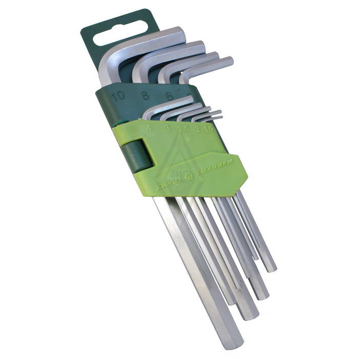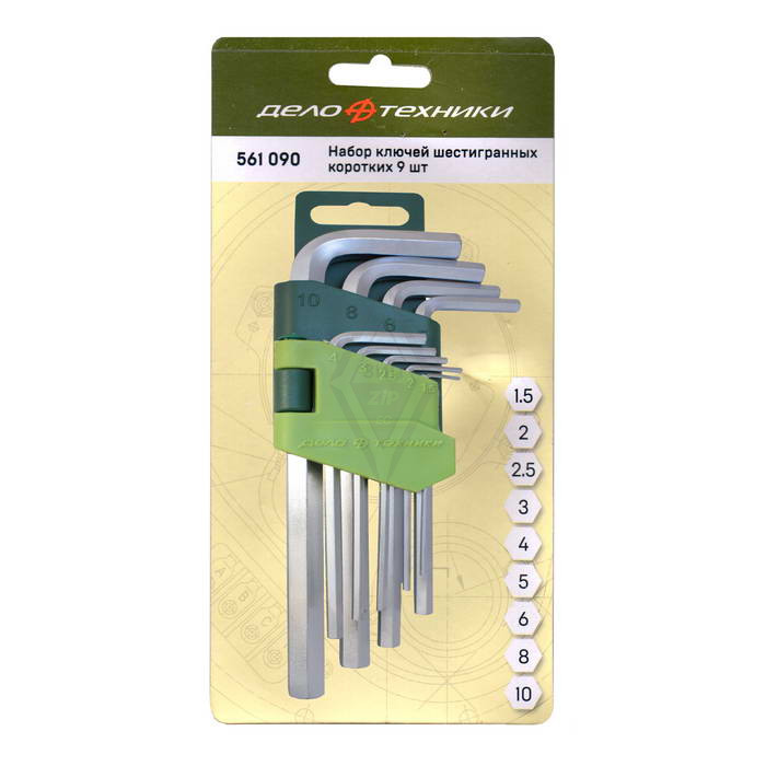 Ключи 561090 Набор ключей шестигранных Дело Техники это комплект из 9 предметов, предназначенных для работы с крепежами с внутренним шестигранником. Инструменты изготовлены из прочной хромванадиевой стали и имеют Г-образную форму, что обеспечивает удобство при работе в труднодоступных местах. Диапазон размеров ключей составляет от 1,5 до 10 мм, что делает набор универсальным для различных задач.