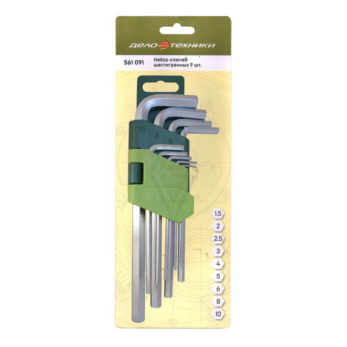 Ключи 561091 Набор ключей шестигранных 9 это комплект из 9 угловых ключей с рабочим профилем HEX. Инструменты изготовлены из прочной стали и имеют хромоникелевое покрытие для защиты от коррозии. Размеры ключей составляют от 1,5 до 10 мм, что делает набор универсальным для различных задач.