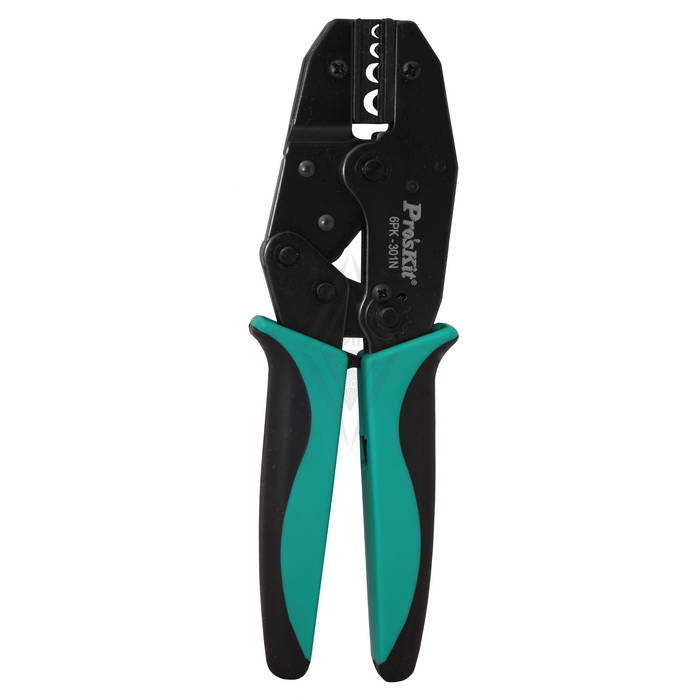Обжимной инструмент 6PK-301N ProsKit предназначен для работы с кабельными наконечниками и разъемами различных типов. Он оснащен шестью сменными матрицами для обжима проводов диаметром от 24 до 32 AWG. С его помощью можно обжимать разъемы RJ45, RJ11, BNC и многие другие.