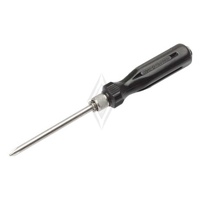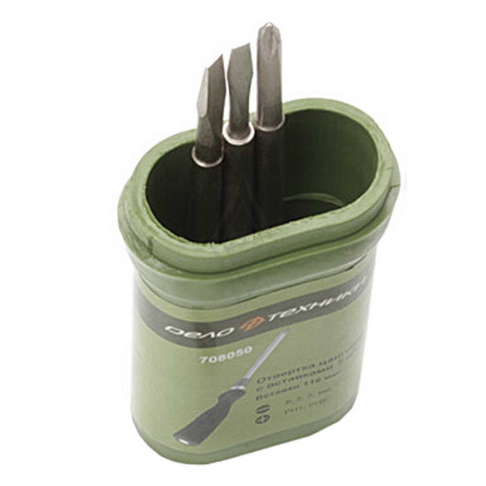 Наборы отверток 708050 Отвертка со вставками 5пр. Дело Техники состоит из пяти предметов и включает отвёртку с цанговым зажимом и сменными вставками разных размеров (шлицы 3, 5 и 6 мм, Philips PH1 и PH2). Стержень выполнен из стали S2 с твёрдостью 48–52 HRC и хромированным покрытием для защиты от коррозии. Этот набор идеально подходит для монтажных работ и ремонта различной техники.