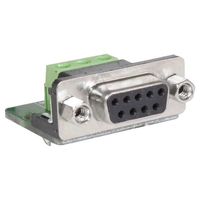 Электронный сигнальный модуль на плате адаптера DRB-09FB (розетка) RUICHI 903-2B для RS-232 интерфейса. Эта конфигурация используется чаще всего при подключении к какому-либо устройству с помощью ПК. Имеет выход нескольких проводов на винтовой клеммный блок. Шаг клемм 2.77 мм. Цвет: черный, зеленый.