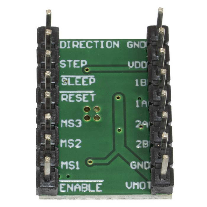 A4988 green - это плата управления для шаговых двигателей позволяющий работать с шагом 1, 1/2, 1/4, 1/8, 1/16. Модуль драйвер может управлять двигателями с напряжением питания до 45 В и током ± 2 A (до 2.2 А).