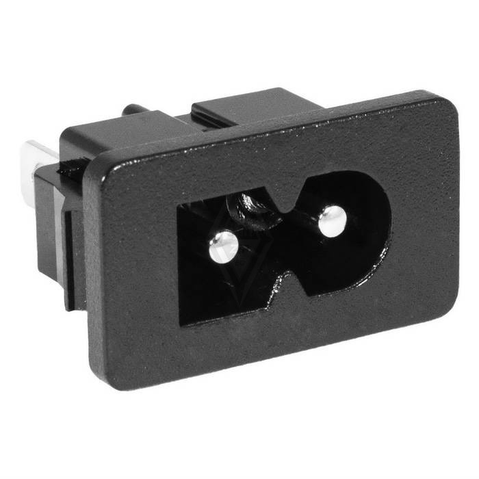 Разъем питания IEC-60320 (C8A) RUICHI AC-033, 2 контакта, 2.5 А, 250 В, -25…+70 °C, черный предназначен для передачи напряжения переменного тока 220 В, а также низковольтного постоянного для компьютеров, ноутбуков, радиолюбительских самоделок, различающиеся по электрическим характеристикам и геометрическим параметрам.