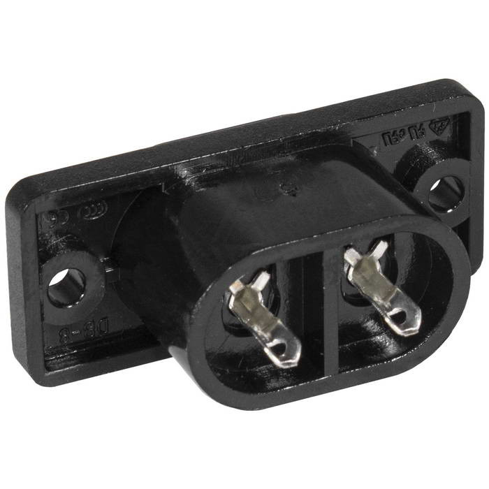Штеккер панельный 2-х полюсный серии AC-03X с фланцами RUICHI AC-034 предназначен для установки на корпуса электро, радиотехнических и телекоммуникационных устройств для обеспечения быстрого и безопасного их подключения к сети питания переменного тока через кабели c соответствующими разъемами. Типовой ряд панельных разъемов включает в себя одиночные штекеры и гнезда, групповые, состоящие из 2-х и более однотипных разъемов, комбинированные, в которых присутствуют дополнительные элементы: выключатели, предохранители и т.п. Крепление панельных разъемов к корпусам изделий может выполняться с помощью защелок, являющихся часть конструктива разъемов или с помощью винтов через крепежные отверстия фланцев разъемов.
