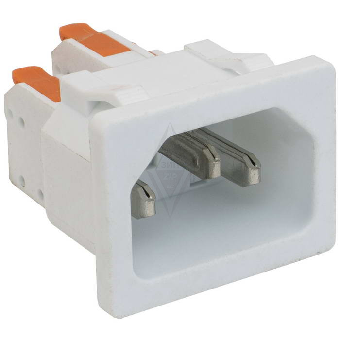Разъём питания RUICHI AC-058, на защёлках, одинарный, белый, пружинно зажимное креполение провода предназначен для передачи напряжения переменного тока 220 В, от сети электрического тока к переферийным устройствам. Пружинно зажимной способ крепления кабеля позволяет проводить быстрый монтаж, без использования специального инструмента.