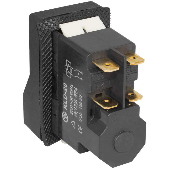 Кнопочный переключатель RUICHI ALBFS-22-B, 57х53х32 мм, 4 контакта под ножевую клемму, 15 А, IP55, 250 В, корпус пластиковый, корпус черный, кнопка черная – это коммутационное устройство с механизмом нажимного действия и обратным приводом, которое предназначено для размыкания и замыкания электрической цепи.