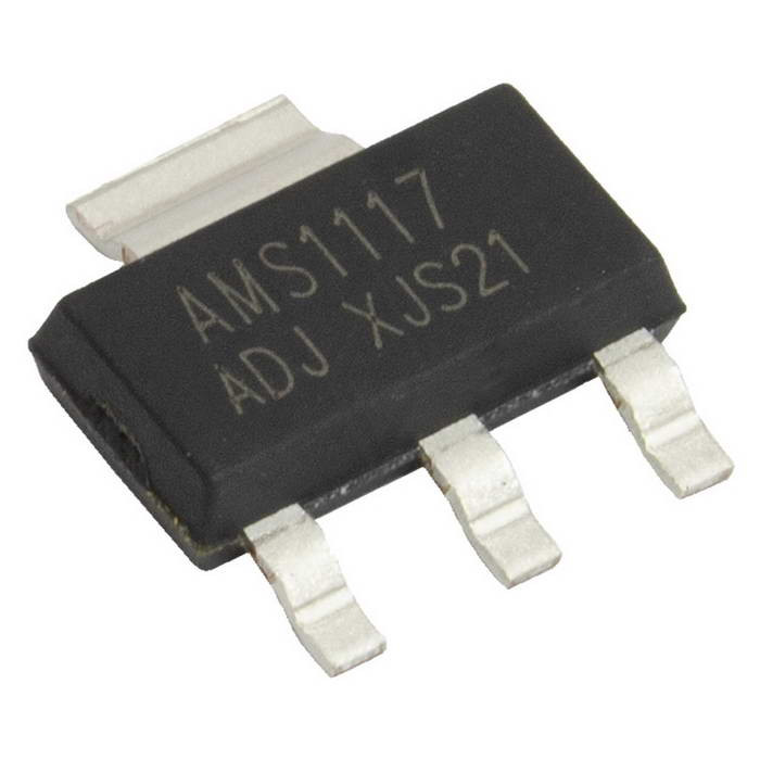 AMS1117-ADJ линейный стабилизатор напряжения для поверхностного монтажа в корпусе SOT-223. Входное напряжение 2.7 - 18 В. Выходное напряжение регулируемое. Выходной ток 1 А. Падение напряжения 1.4 В. PSRR - 70 дБ. Диапазон рабочих температур 0...125 °С