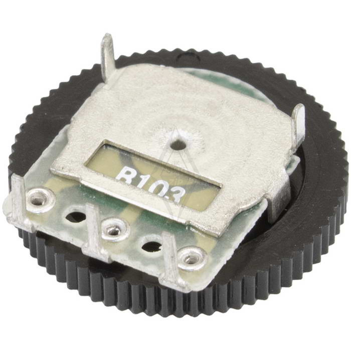 Дуплексный зубчатый потенциометр (переключатель громкости) RUICHI B103, 10 кОм, 1 А, 50 В/12 В, 3 контакта, корпус: толщина 2 мм, диаметр 16 мм используются при многократных регулировках аппаратуры, обладают большой износоустойчивостью.