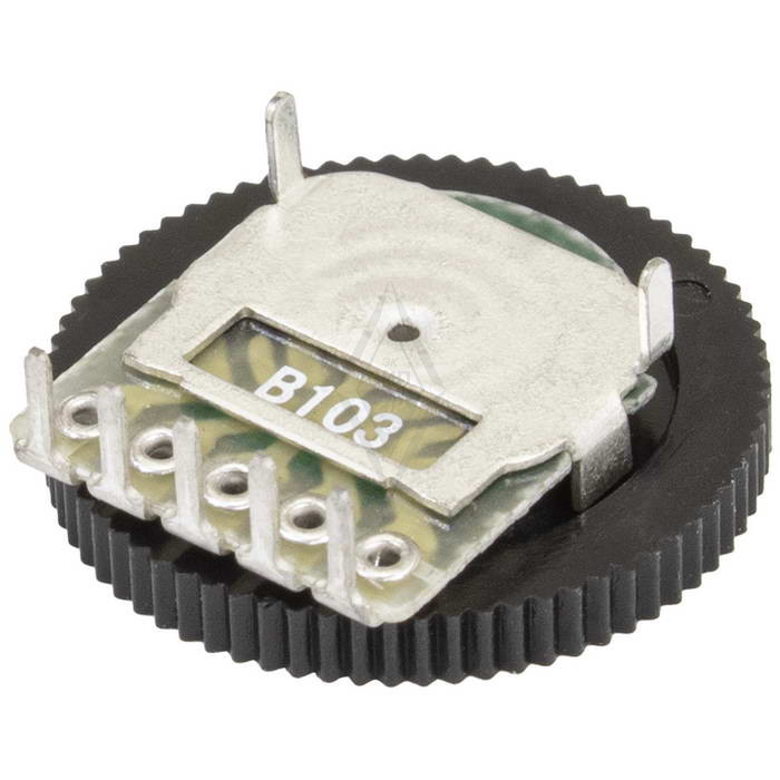 Дуплексный зубчатый потенциометр (переключатель громкости) RUICHI B103, 10 кОм, 1 А, 50 В/12 В, 5 контактов, корпус: толщина 2 мм, диаметр 16 мм используются при многократных регулировках аппаратуры, обладают большой износоустойчивостью.