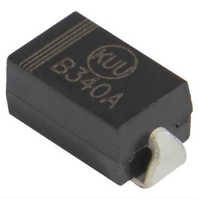 B340A диод Шоттки для поверхностного монтажа в корпусе DO-214AC (SMA). Максимальное обратное напряжение 40 В, максимальный прямой ток 3 А. Прямое падение напряжения 0.55 В. Ток утечки 500 мкА.