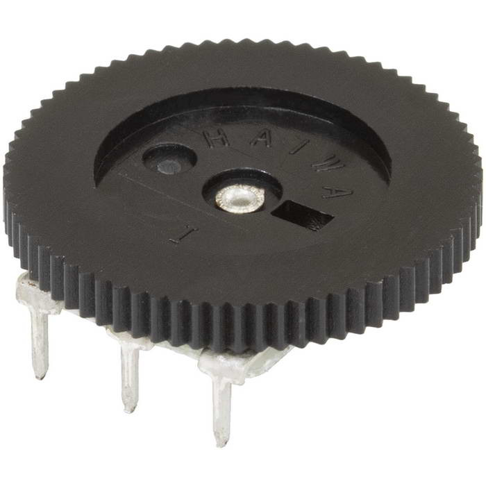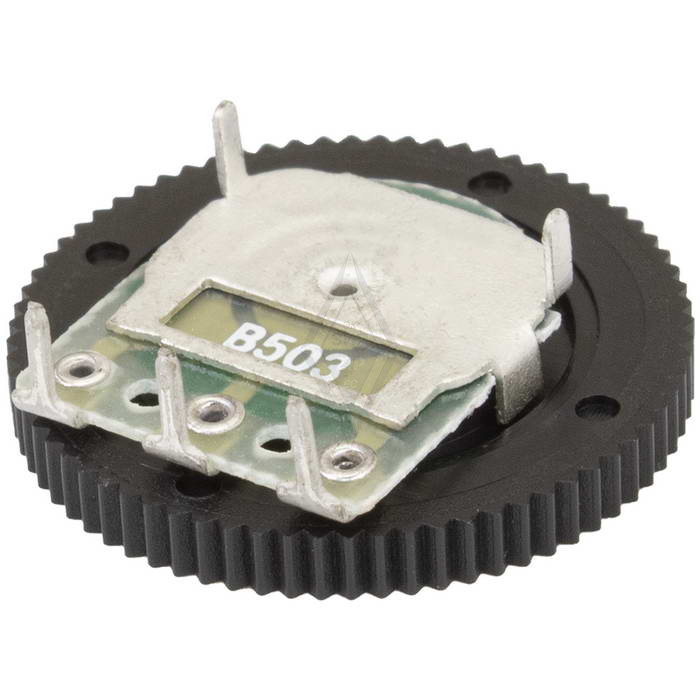 Дуплексный зубчатый потенциометр (переключатель громкости) RUICHI B503, 50 кОм, 1 А, 50 В/12 В, 3 контакта, корпус: толщина 2 мм, диаметр 18 мм используются при многократных регулировках аппаратуры, обладают большой износоустойчивостью.