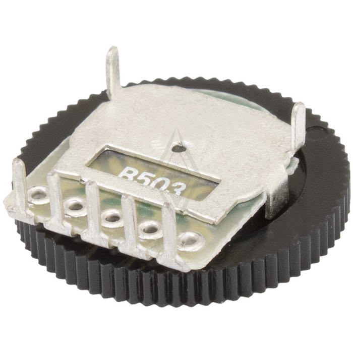 Дуплексный зубчатый потенциометр (переключатель громкости) RUICHI B503, 50 кОм, 1 А, 50 В/12 В, 5 контактов, корпус: толщина 2 мм, диаметр 16 мм используются при многократных регулировках аппаратуры, обладают большой износоустойчивостью.
