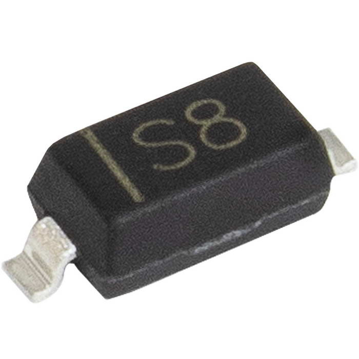 BAT43W диод Шоттки для поверхностного монтажа в корпусе SOD-123. Максимальное обратное напряжение 25 В, максимальный прямой ток 200 мА, прямое падение напряжения 0,45 В