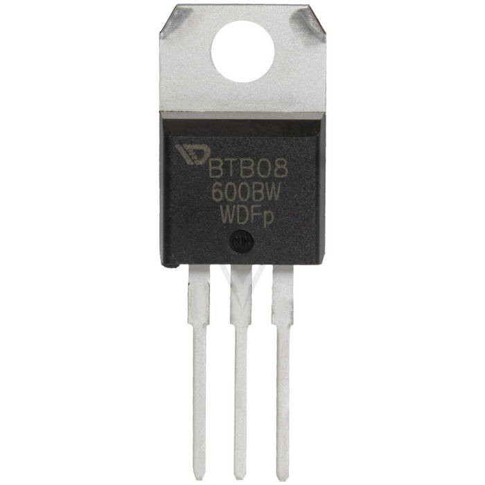 BTB08-600BW стандартный трехквадрантный симистор (триак) для сквозного монтажа в корпусе TO-220AB. Максимальное обратное напряжение 600 Вольт, максимальный коммутируемый ток 8 Ампер, предельная скорость нарастания обратного напряжения (dV/dt) 1000 В/мкс. Не требует дополнительного R-C снаббера. Позволяет работать с более высокими скоростями нарастания dV/dt по сравнению с 4Q версией.