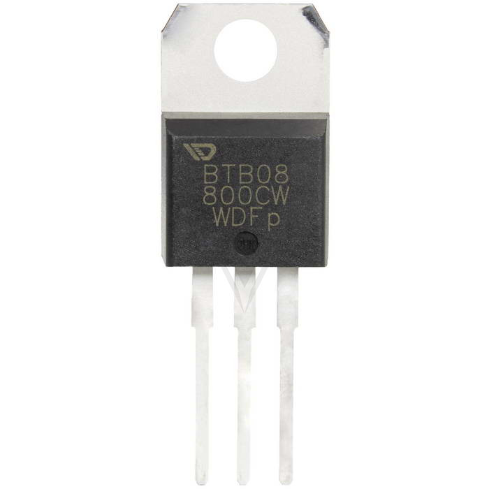 BTB08-800BW стандартный трехквадрантный симистор (триак) для сквозного монтажа в корпусе TO-220AB. Максимальное обратное напряжение 800 Вольт, максимальный коммутируемый ток 8 Ампер, предельная скорость нарастания обратного напряжения (dV/dt) 500 В/мкс. Не требует дополнительного R-C снаббера. Позволяет работать с более высокими скоростями нарастания dV/dt по сравнению с 4Q версией.