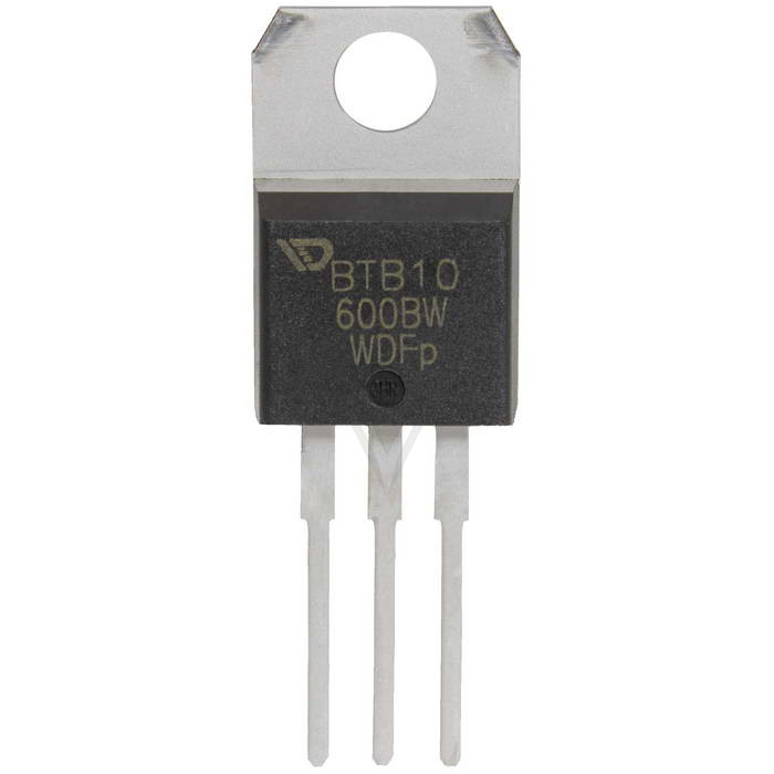 BTB10-600BW стандартный трехквадрантный симистор (триак) для сквозного монтажа в корпусе TO-220AB. Максимальное обратное напряжение 600 Вольт, максимальный коммутируемый ток 10 Ампер, предельная скорость нарастания обратного напряжения (dV/dt) 1000 В/мкс. Не требует дополнительного R-C снаббера. Позволяет работать с более высокими скоростями нарастания dV/dt по сравнению с 4Q версией.