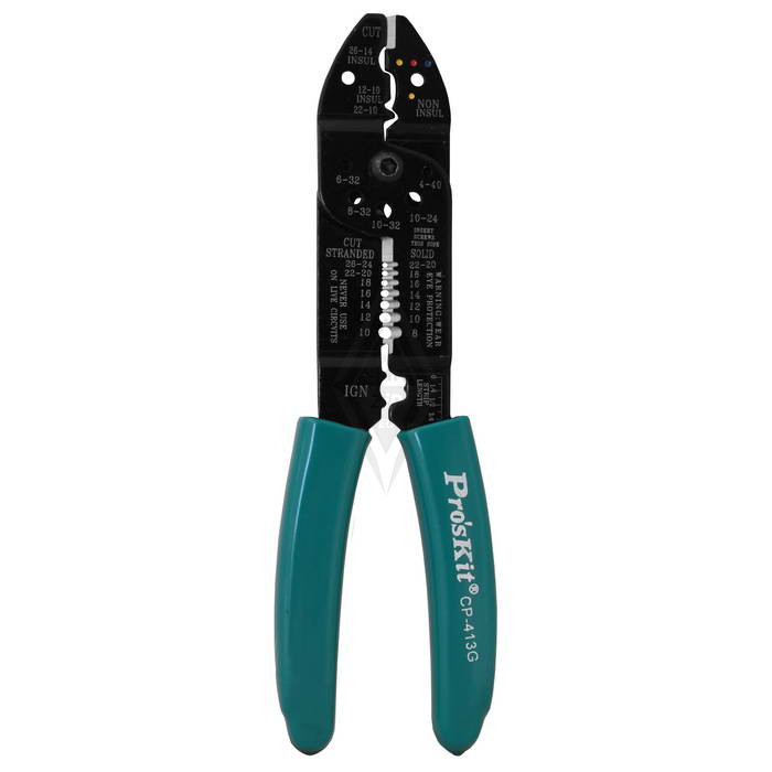 Для зачистки и обрезки кабеля CP-413G ProsKit это высококачественное устройство с эргономичным дизайном, предназначенное для быстрого и эффективного удаления изоляции и обрезки проводов различных диаметров.