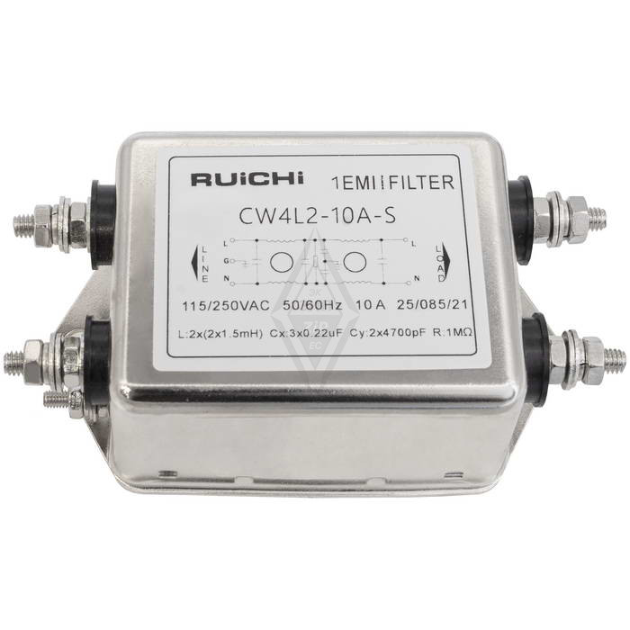 Однофазный сетевой EMI/RFI фильтр RUICHI CW4L2-10A-S рассчитан на ток до 10А при напряжении 115/250VAC. Отличается компактным корпусом, удобным болтовым монтажом и двухступенчатой фильтрацией, обеспечивающей высокую эффективность подавления электромагнитных помех. Оптимально подходит для применения в промышленном оборудовании, системах автоматизации, станках с ЧПУ и другой производственной электронике.
