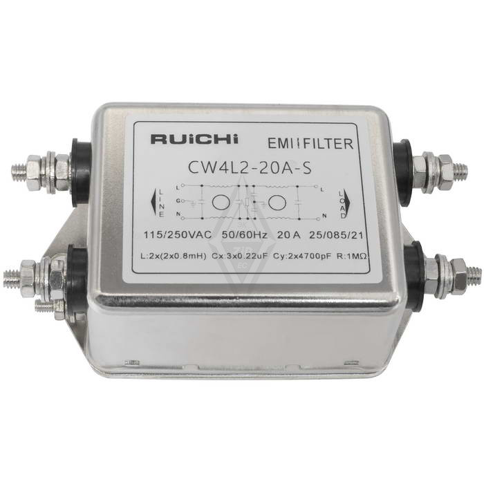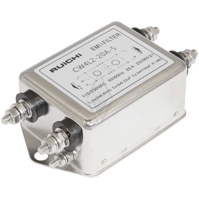 Однофазный сетевой EMI/RFI фильтр RUICHI CW4L2-20A-S рассчитан на ток до 20А при напряжении 115/250VAC. Отличается компактным корпусом, удобным болтовым монтажом и двухступенчатой фильтрацией, обеспечивающей высокую эффективность подавления электромагнитных помех. Оптимально подходит для применения в промышленном оборудовании, системах автоматизации, станках с ЧПУ и другой производственной электронике.