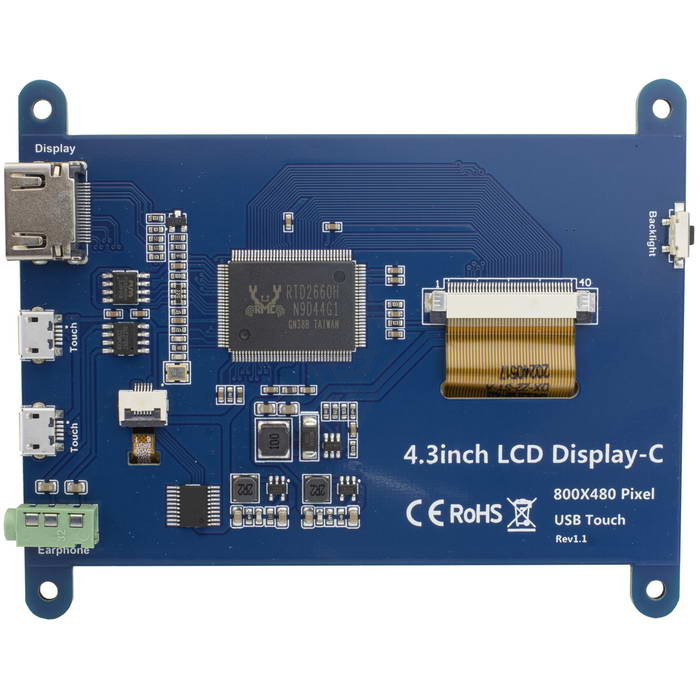 4.3-дюймовый сенсорный HDMI-дисплей RUICHI DSM-IPS-TOUCH-4 – компактный и многофункциональный экран с IPS-матрицей и разрешением 800x480 пикселей. Обеспечивает яркие цвета, широкие углы обзора и высокую чувствительность к прикосновениям благодаря емкостному сенсорному управлению.