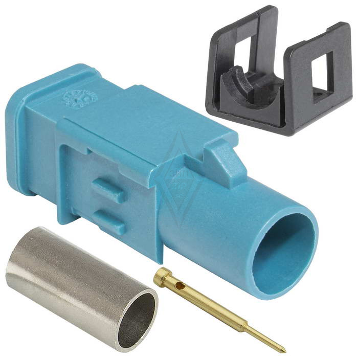 Высокочастотный разъем RUICHI серии FAKRA TYPE C-PB (вилка) для коммутации оборудования GPS/ГЛОНАСС, обжимной, на кабель RG174/RG316, 5000 МОм, -40…+105 °C, цвет корпуса синий (RAL 5005) используется для коммутации оборудования GPS и ГЛОНАСС в системах телематики и навигации. Высокочастотный коннектор имеет прямую конфигурацию и предназначен для установки на кабель RG-316 или RG-174 методом обжима. Обычно эти тонкие кабели используются для изготовления коротких соединительных адаптеров (пигтейлов), а также для коммутации оборудования на небольшом расстоянии.