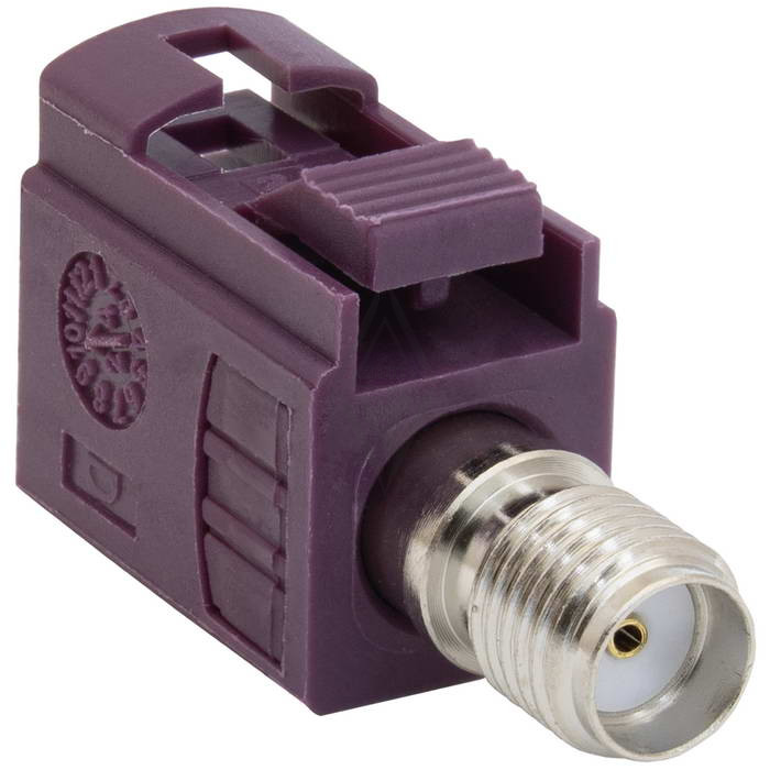 Высокочастотный разъем RUICHI серии FAKRA TYPE D-J (розетка) / SMA-J (розетка) для коммутации оборудования GSM, обжимной, на кабель RG174/RG316, 5000 МОм, -40…+105 °C, цвет корпуса фиолетовый (RAL 4004) используется для подключения разнообразного радиооборудования. Высокочастотный коннектор имеет прямую конфигурацию и предназначен для установки на кабель RG-316 или RG-174 методом обжима. Обычно эти тонкие кабели используются для изготовления коротких соединительных адаптеров (пигтейлов), а также для коммутации оборудования на небольшом расстоянии.