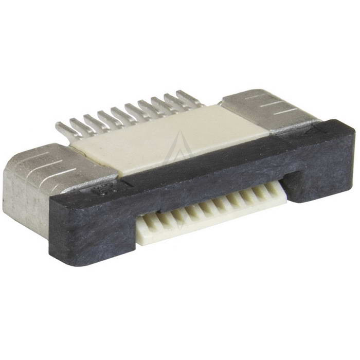 FPC/FFC разъем для гибких плоских печатных шлейфов и печатных плат RUICHI, шаг контактов 0.5 мм, 10 контактов, 0.5 А, 50 В, 50 МОм, корпус полистирол UL94V-0, монтаж на плату, под пайку имеет функцию ручной и автоматической блокировки, которая может соединять шлейф и разъём одним касанием, что делает такой разъем для плоских гибких кабелей и плоских печатных схем более надежным и долговечным. FPC/FFC разъемы также могут иметь опцию экранирования от электромагнитных помех на 360 градусов и поддерживают высокоскоростную передачу данных, а также работают с высокими температурами до 125 °C.