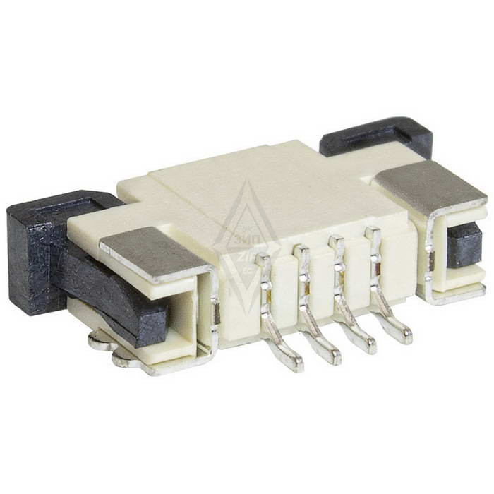 FPC/FFC разъем для гибких плоских печатных шлейфов и печатных плат RUICHI, шаг контактов 1.0 мм, 4 контакта, 0.5 А, 50 В, 50 МОм, корпус полистирол UL94V-0, монтаж на плату, под пайку имеет функцию ручной и автоматической блокировки, которая может соединять шлейф и разъём одним касанием, что делает такой разъем для плоских гибких кабелей и плоских печатных схем более надежным и долговечным. FPC/FFC разъемы также могут иметь опцию экранирования от электромагнитных помех на 360 градусов и поддерживают высокоскоростную передачу данных, а также работают с высокими температурами до 125 °C.