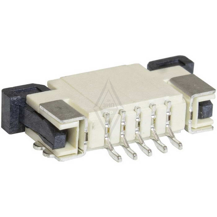 FPC/FFC разъем для гибких плоских печатных шлейфов и печатных плат RUICHI, шаг контактов 1.0 мм, 5 контактов, 0.5 А, 50 В, 50 МОм, корпус полистирол UL94V-0, монтаж на плату, под пайку имеет функцию ручной и автоматической блокировки, которая может соединять шлейф и разъём одним касанием, что делает такой разъем для плоских гибких кабелей и плоских печатных схем более надежным и долговечным. FPC/FFC разъемы также могут иметь опцию экранирования от электромагнитных помех на 360 градусов и поддерживают высокоскоростную передачу данных, а также работают с высокими температурами до 125 °C.