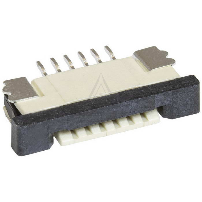 FPC/FFC разъем для гибких плоских печатных шлейфов и печатных плат RUICHI, шаг контактов 1.0 мм, 6 контактов, 0.5 А, 50 В, 50 МОм, корпус полистирол UL94V-0, монтаж на плату, под пайку имеет функцию ручной и автоматической блокировки, которая может соединять шлейф и разъём одним касанием, что делает такой разъем для плоских гибких кабелей и плоских печатных схем более надежным и долговечным. FPC/FFC разъемы также могут иметь опцию экранирования от электромагнитных помех на 360 градусов и поддерживают высокоскоростную передачу данных, а также работают с высокими температурами до 125 °C.