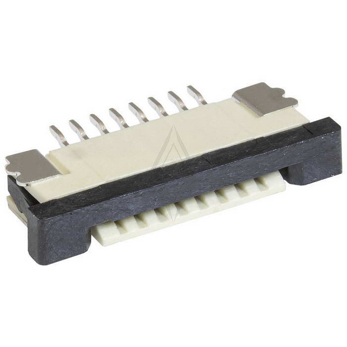 FPC/FFC разъем для гибких плоских печатных шлейфов и печатных плат RUICHI, шаг контактов 1.0 мм, 8 контактов, 0.5 А, 50 В, 50 МОм, корпус полистирол UL94V-0, монтаж на плату, под пайку имеет функцию ручной и автоматической блокировки, которая может соединять шлейф и разъём одним касанием, что делает такой разъем для плоских гибких кабелей и плоских печатных схем более надежным и долговечным. FPC/FFC разъемы также могут иметь опцию экранирования от электромагнитных помех на 360 градусов и поддерживают высокоскоростную передачу данных, а также работают с высокими температурами до 125 °C.