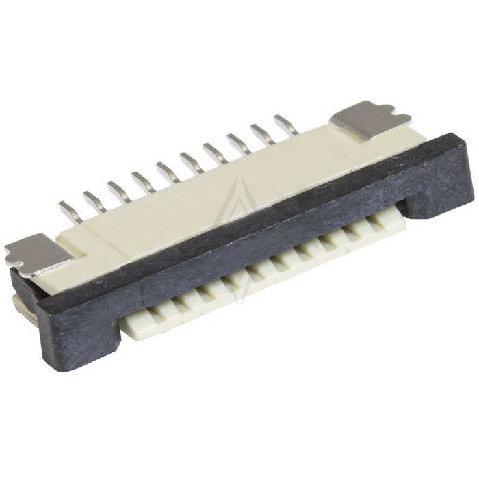 FPC/FFC разъем для гибких плоских печатных шлейфов и печатных плат RUICHI, шаг контактов 1.0 мм, 10 контактов, 0.5 А, 50 В, 50 МОм, корпус полистирол UL94V-0, монтаж на плату, под пайку имеет функцию ручной и автоматической блокировки, которая может соединять шлейф и разъём одним касанием, что делает такой разъем для плоских гибких кабелей и плоских печатных схем более надежным и долговечным. FPC/FFC разъемы также могут иметь опцию экранирования от электромагнитных помех на 360 градусов и поддерживают высокоскоростную передачу данных, а также работают с высокими температурами до 125 °C.