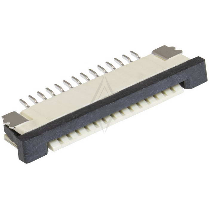 FPC/FFC разъем для гибких плоских печатных шлейфов и печатных плат RUICHI, шаг контактов 1.0 мм, 14 контактов, 0.5 А, 50 В, 50 МОм, корпус полистирол UL94V-0, монтаж на плату, под пайку имеет функцию ручной и автоматической блокировки, которая может соединять шлейф и разъём одним касанием, что делает такой разъем для плоских гибких кабелей и плоских печатных схем более надежным и долговечным. FPC/FFC разъемы также могут иметь опцию экранирования от электромагнитных помех на 360 градусов и поддерживают высокоскоростную передачу данных, а также работают с высокими температурами до 125 °C.