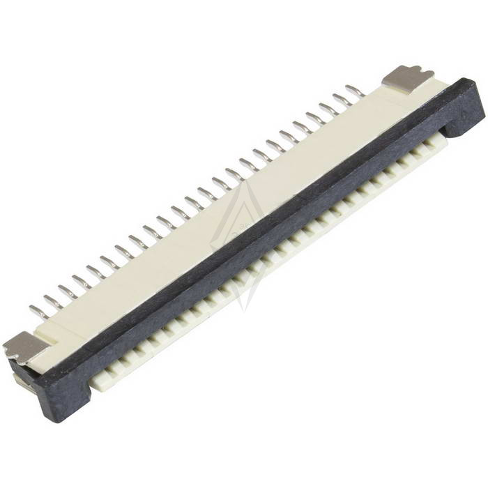FPC/FFC разъем для гибких плоских печатных шлейфов и печатных плат RUICHI, шаг контактов 1.0 мм, 24 контакта, 0.5 А, 50 В, 50 МОм, корпус полистирол UL94V-0, монтаж на плату, под пайку имеет функцию ручной и автоматической блокировки, которая может соединять шлейф и разъём одним касанием, что делает такой разъем для плоских гибких кабелей и плоских печатных схем более надежным и долговечным. FPC/FFC разъемы также могут иметь опцию экранирования от электромагнитных помех на 360 градусов и поддерживают высокоскоростную передачу данных, а также работают с высокими температурами до 125 °C.