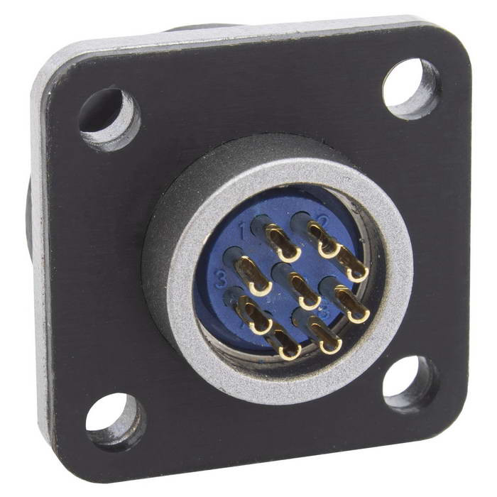 Разъём быстроразъёмный RUICHI FQ14-9pin ZJ, 9-контактный представляет собой металлический герметичный круглый соединитель с быстросъемным байонетным сочленением. Байонетные защелки обеспечивают надежность сочленения ответных частей в отличие от обычного резьбового соединения. Главная особенность разъемов – работоспособность в любых условиях эксплуатации.