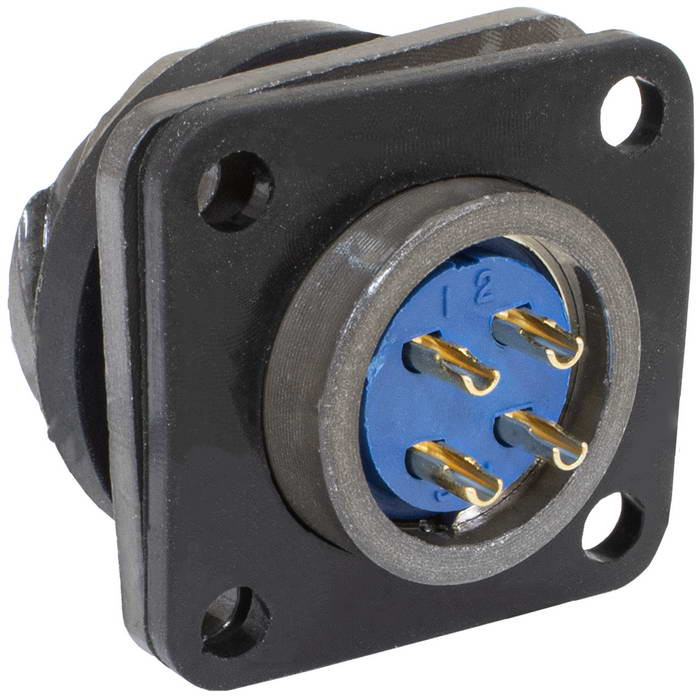 Разъём быстроразъёмный RUICHI FQ18-4pin ZJ, 4-х контактный представляет собой металлический герметичный круглый соединитель с быстросъемным байонетным сочленением. Байонетные защелки обеспечивают надежность сочленения ответных частей в отличие от обычного резьбового соединения. Главная особенность разъемов – работоспособность в любых условиях эксплуатации.