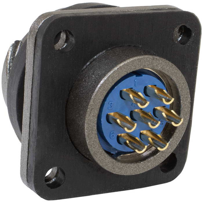 Разъём быстроразъёмный RUICHI FQ18-7pin ZJ, 7-ми контактный представляет собой металлический герметичный круглый соединитель с быстросъемным байонетным сочленением. Байонетные защелки обеспечивают надежность сочленения ответных частей в отличие от обычного резьбового соединения. Главная особенность разъемов – работоспособность в любых условиях эксплуатации.