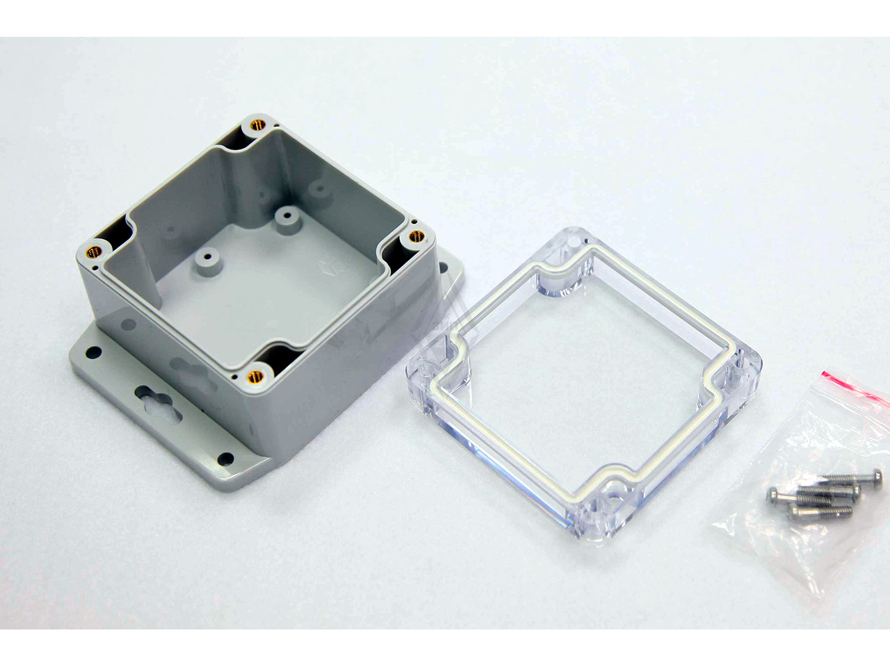 82х80х55мм, IP67, поликарбонат, светло-серый, прозрач. крышка, с фланцами / G256CMF-IP67
