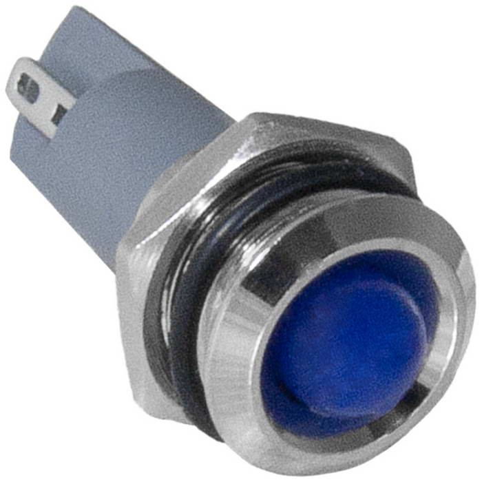 Индикатор антивандальный RUICHI GQ10PR-B, цвет синий, точечный излучатель, 12-24 В, 15 мА, гибкие выводы, никелированная латунь - это источник света для демонстрации электрических процессов в приборах. Конструктивно представляет собой модуль индикации, оснащенный контактным блоком, к которому припаиваются или присоединяются проводники.